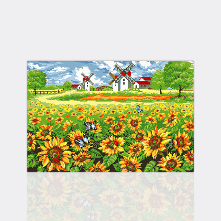 해바라기,풍차,대형,풍경,여름, 풍경화,꽃밭, 해바라기밭, 해바라기들판, 들판, 여름풍경, 언덕