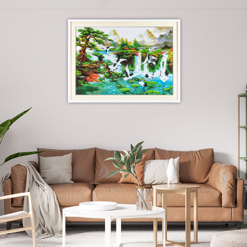 산수화, 풍경, 풍경화, 산, 절경, 학, 소나무, 송학, 소나무와학, 계곡, 물, 물가,